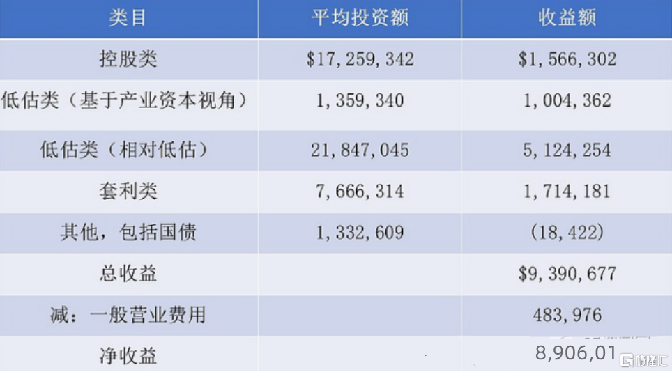 合伙人账户的整体净收益率按照年初和年末的市场价值计算,并根据向合伙人支付的利息或合伙人投入的资金进行调整。我们不是根据当年实际实现的利润计算收益率。这么计算是为了衡量每一年清算价值的变化。计算收益率时扣除了经营费用,但没有扣除向合伙人支付的利息(详见合伙合同),也没有扣除向普通合伙人支付的利润分成。